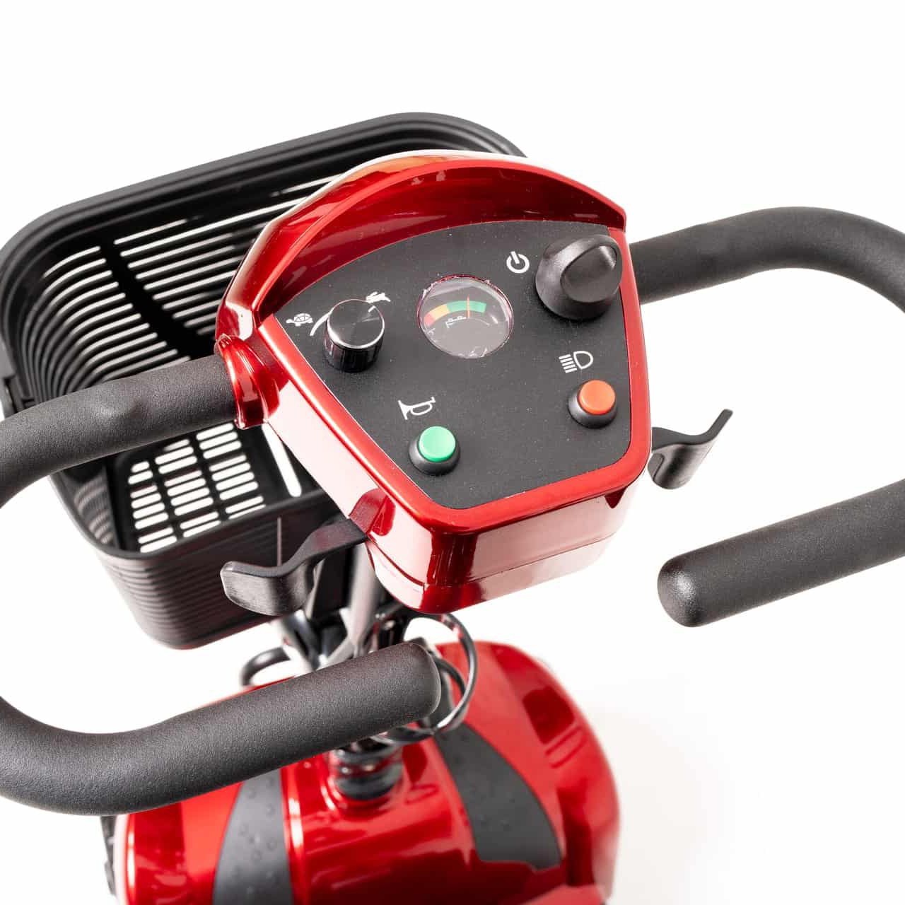 Para asegurar confort, el asiento acolchado gira 360º y es regulable en altura, ideal para facilitar transferencias y encontrar tu postura. Los reposabrazos abatibles y el mástil ajustable en ángulo se adaptan a tu cuerpo, y la barra tipo delta permite sujetar y controlar el scooter con menos esfuerzo en manos y muñecas. Todo ello en unas dimensiones compactas (108 × 66 × 94 cm) que te ayudan a entrar por puertas estándar, con ancho de asiento de 46 cm, altura de asiento 40/43/47 cm y capacidad de usuario de hasta 120 kg. Sus ruedas de mayor tamaño (210×65) aportan estabilidad y tracción para exterior sin renunciar a la maniobrabilidad en interior.